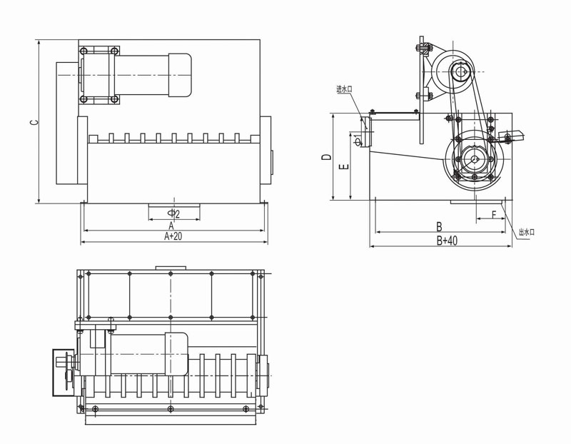 | 型號(hào) | 流量 | A | B | C | D | E | 進(jìn)水口 | 電機(jī)功率 |